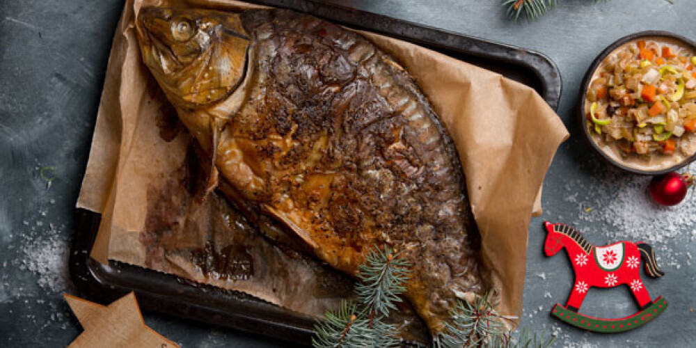 Karpu izķidā, notīra zvīņas un ierīvē ar sāli un svaigi maltiem pipariem gan no ārpuses, gan no iekšpuses. Karpu pārliek uz cepmās paplātes un cep apm. 50 min. cepeškrāsnī 180 grādos.