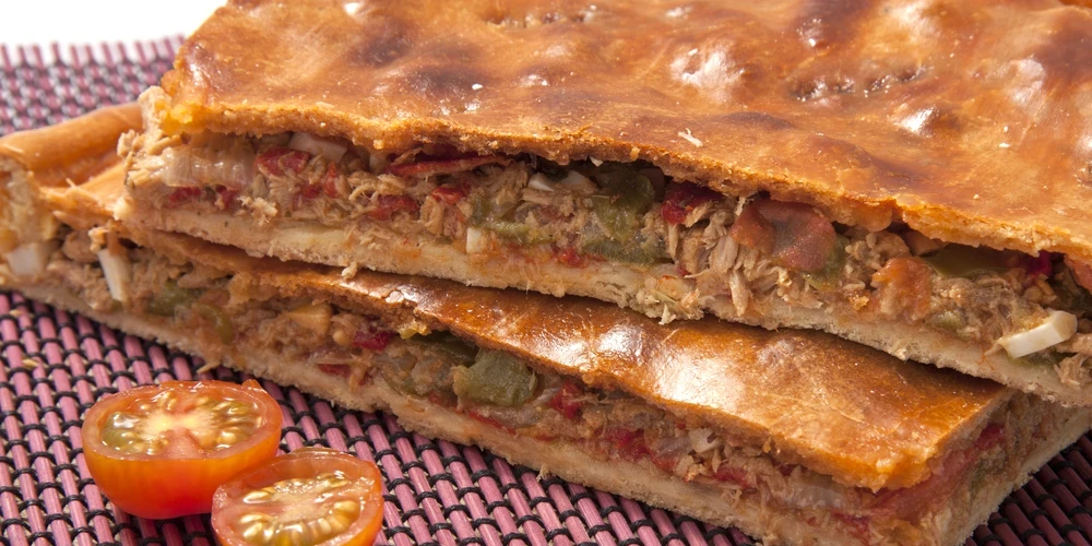 Kārtainā tunča kūka ar marinētiem gurķiem un olām