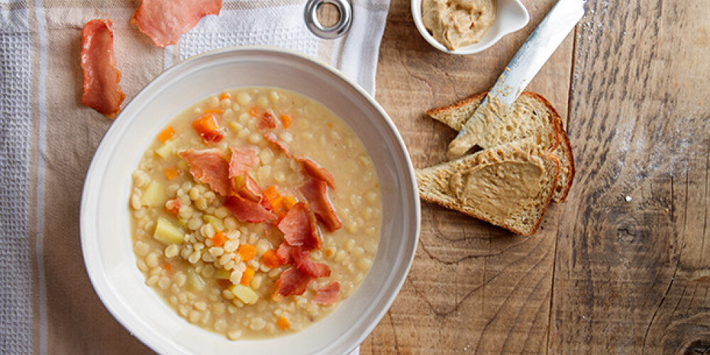 Zirņus iemērc iepriekšējā vakarā ūdenī.