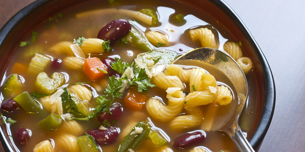 Lielā katlā uzvāri 1–1,5 l ūdens, pieber sāli, ieber pupiņas un vāri apmēram 15 minūtes. Pēc tam pievieno pārējos dārzeņus, iemaisi olīveļļu un uz lēnas uguns vāri pusstundu.