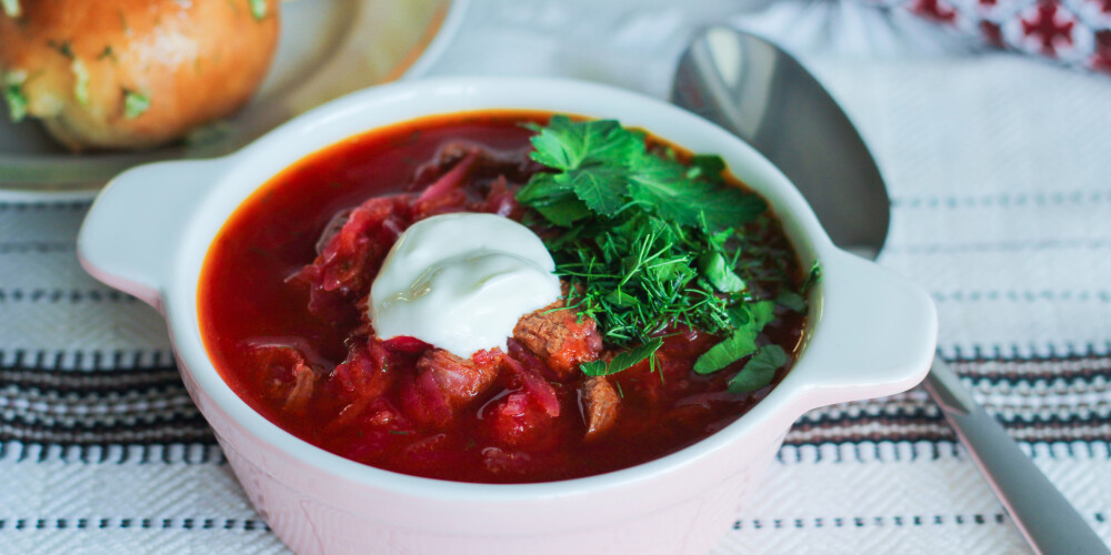 Katlā lej kvasu, pievieno gaļu, lauru lapas, piparus un sāli un izvāri buljonu, pēc tam gaļu izņem laukā un sagriez gabaliņos.Tikmēr bietes ar visu mizu liec cepeškrāsnī un izcep. Atdzesē, nomizo un sarīvē rupjās skaidiņās.