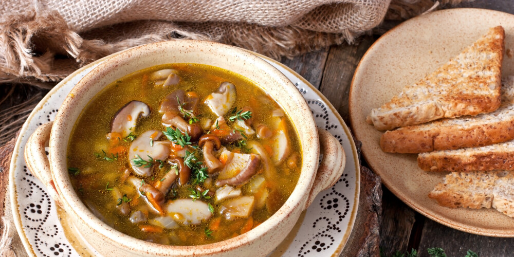Ja izmanto kaltētas sēnes, aplej tās ar verdošu ūdeni, lai uzbriest. Ja izmanto svaigās sēnes, sagriez palielos gabalos. Vispiemērotākās ir baravikas vai šitaki.