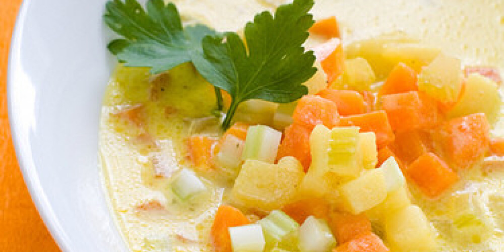 Pa to laiku saldo krējumu sajaukt ar kariju un pievienot zupai. Kad sāk vārīties izslēgt ārā.