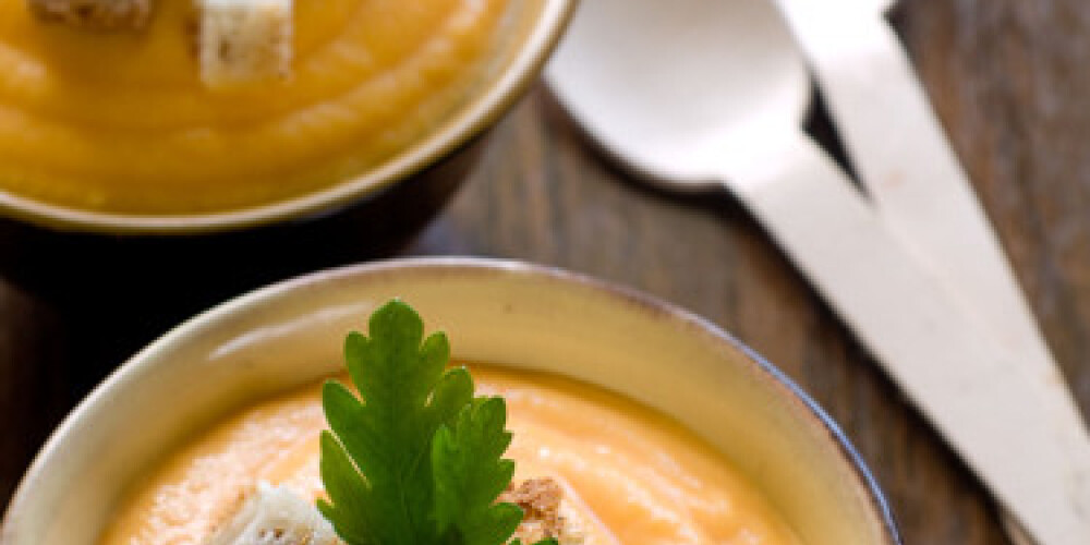 Atdzesēt un sasmalcināt blenderī. Pasniegt ar krējumu, grauzdiņiem