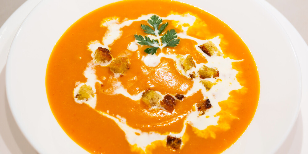 Maizi apgrauzdē un ierīvē ar ķiploku. Sagriež mazos kubiņos. Zupu pasniedz, pārkaisot ar grauzdiņiem.