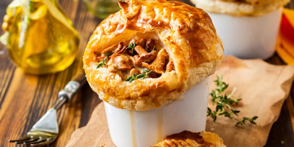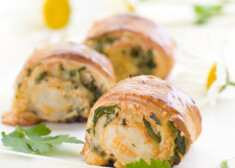 Ar sieru un sēnēm pildīti vistas veltnīši