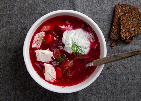 Krāsnī ceptas bietes ar kazas siera krēmu