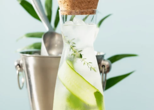 Atspirdzinošs dzēriens ar gurķiem, garšaugiem un ogām