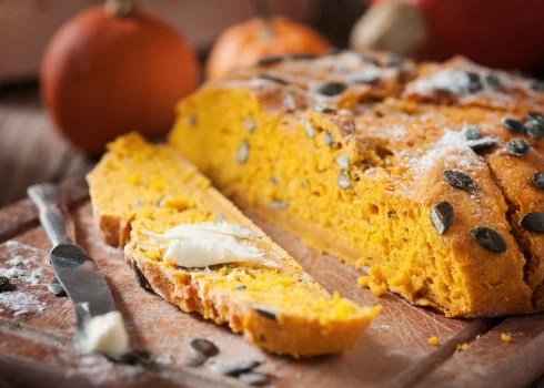 Krāsnī ceptas ķirbja šķēles ar riekstiem un brinzu