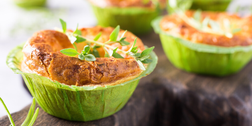 Tikmēr ogas saspaidi un samaisi ar krējumu, pieber sāli un piparus. Pasniedz pie mafiniem.