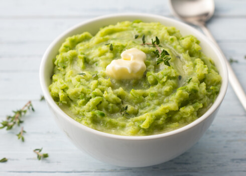 Kartupeļu biezputra ar zaļajiem zirnīšiem