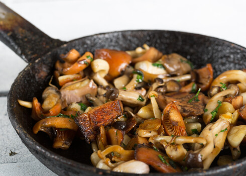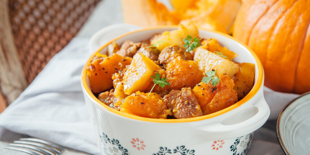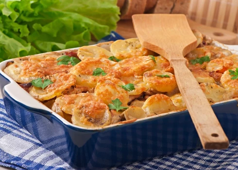 Pupiņu un kartupeļu sacepums ar sēnēm
