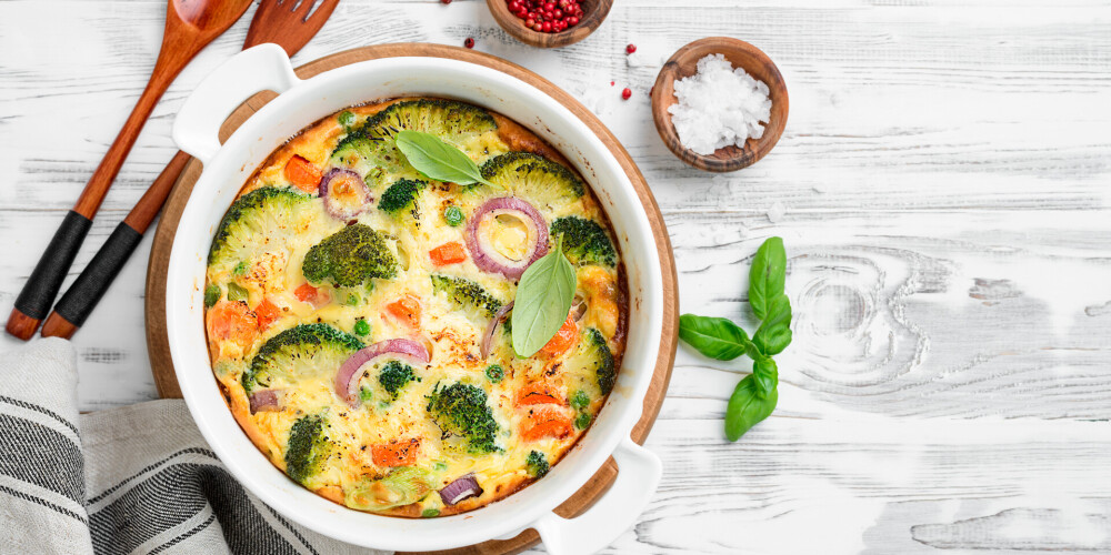 Uzkarsē cepeškrāsni līdz 180 grādiem. Garenu cepamo formu (piemēram, 25 x 10 cm) rūpīgi izklāj ar alumīnija foliju. Liec tajā pa kārtām dārzeņus, katru kārtu salīmējot ar mērci. Liec formu ūdens peldē cepties 1 stundu. Ja virsma pārāk apbrūnē, pārsedz to ar foliju. Gatavu atdzesē, tad izgāz no formas un sagriez šķēlēs.