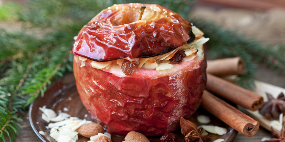 Veseliem āboliem uzmanīgi izgriez vai ar speciālo nazīti izdur serdi. Vienu galu tukšajam viducim aizpildi ar marcipānu. Ābolus uzmanīgi iesēdini veidnē un vidiņus piepildi ar riekstu maisījumu. Virsū uzliec mazas sviesta piciņas.