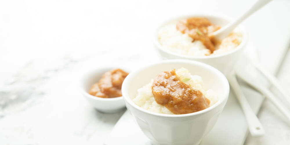 Rabarberus nomizo, sagriez mazos gabaliņos un ber katlā. Pievieno cukuru un ābolu sulu un uz lēnas uguns sautē 10 minūtes.