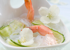 Stikla nūdeles ar garnelēm ledū