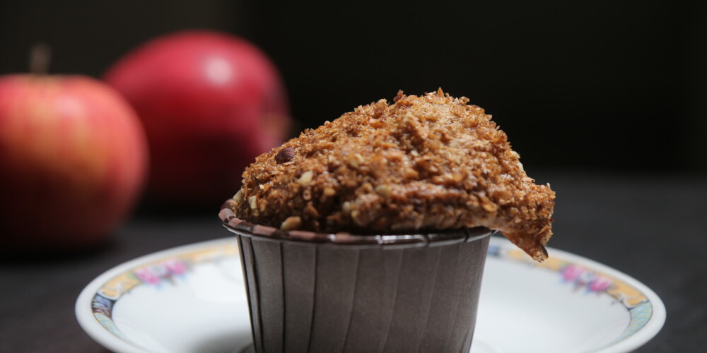 Sapildi mīklu mafinu formiņās un pārkaisi ar riekstu, kliju un cukura maisījumu. Cep aptuveni 20 minūtes. Gatavību pārbaudi ar koka skaliņu – ja, iedurot mafina viducī un izvelkot, tas ir sauss, ir gatavs!