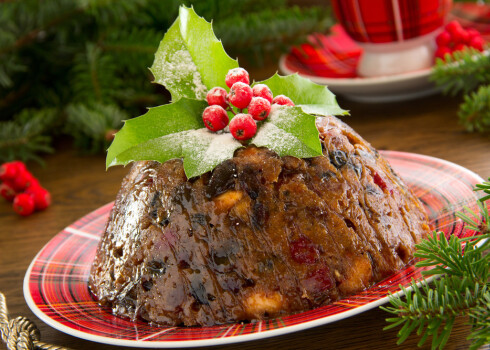 Alū mērcētu augļu pudiņš Ziemassvētkiem