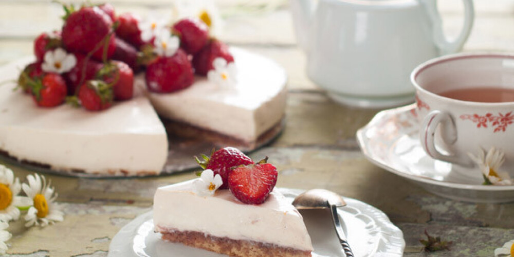 Krējuma kūka ar svaigām zemenēm