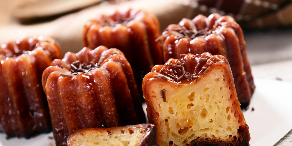 Lielā karstumā cep tikai 8 minūtes, pēc tam noregulē karstumu uz 180 grādiem un turpini cept 40 minūtes – kamēr kanelē ir brūni un kraukšķīgi. Pirms izņemt no formiņām, ļauj, lai 10 minūtes pastāv.