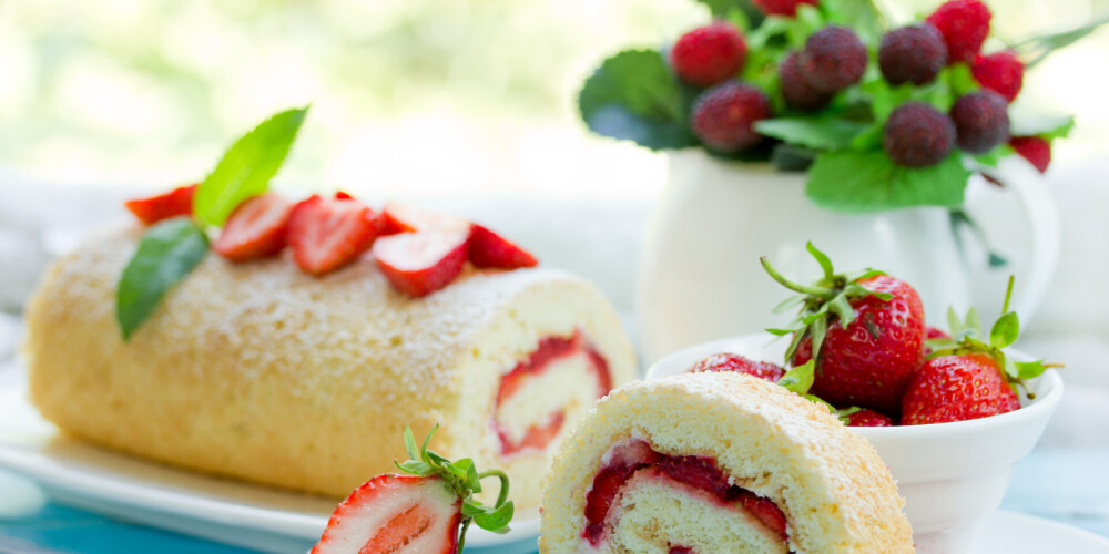 RULETES VEIDOŠANA: 1. Uz galda uzklāj tīru dvieli un cepampapīru. Kamēr biskvīts ir karsts, tas jādabū nost no papīra un jārullē rulete, jo, kad tas atdzisis, vairs nevar sarullēt. 2. Uz biskvīta liek saputoto krēmu un to izsmērē (dara ātri, jo saldais krējums kūst). 3. Pa virsu liek ogas. Visu satin rullītī, ietin cepampapīrā, liek ledusskapī sastingt un atdzist.