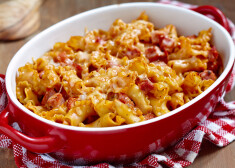 Makaroni ar salami un pikanto siera mērci