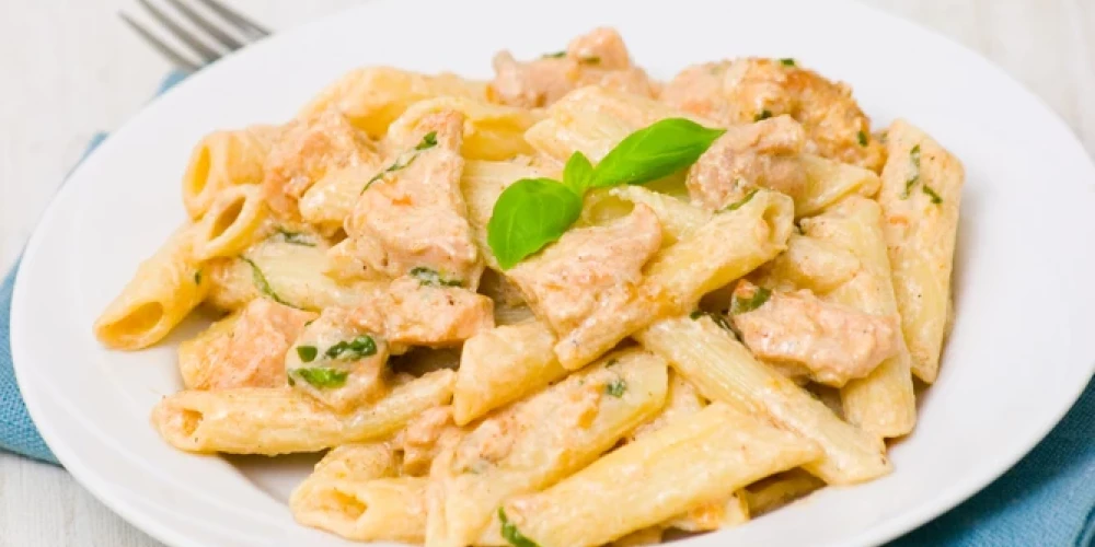 Makaroni ar garnelēm un karamelizētiem tomātiem