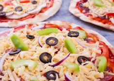 Pica ar salami, gurķiem un olīvām
