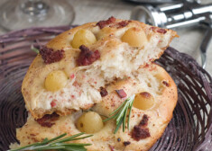 Pīrāgs ar šķiņķi, lokiem un biezpienu