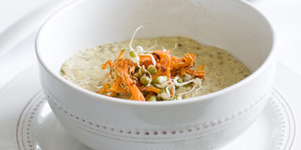 Pasniegt aplejot ar laima sulu un pārkaisīt ar ķīniešu pupiņām un koriandra zaļumiem.