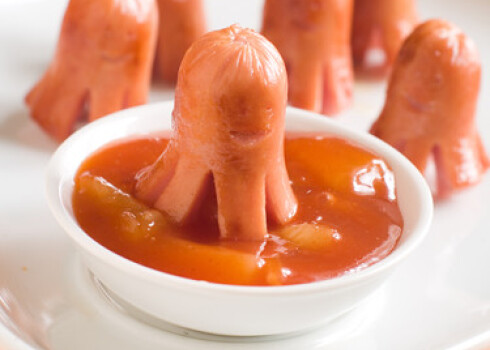 Makaroni ar siera mērci un cīsiņu astoņkājīšiem