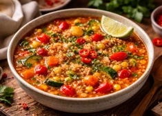 Sātīgā vistas gaļas zupa ar šampinjoniem