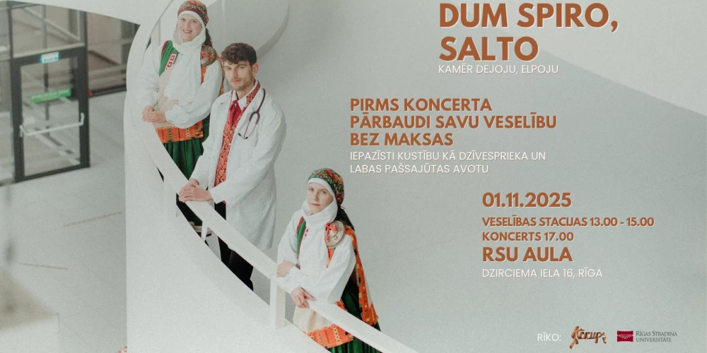 Ziņas24.10.2025RSU TDA “Ačkups” vidējās paaudzes kolektīvs aicina uz bezmaksas veselības pārbaudēm un koncertu “Dum spiro, salto”13