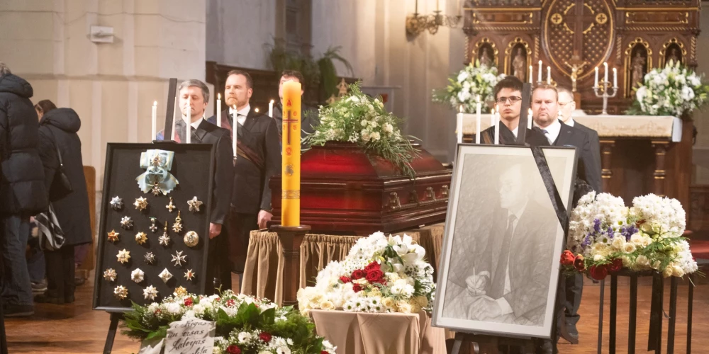 FOTO: Rīgas Domā ļaudis atvadās no Vairas Vīķes-Freibergas vīra Imanta Freiberga
