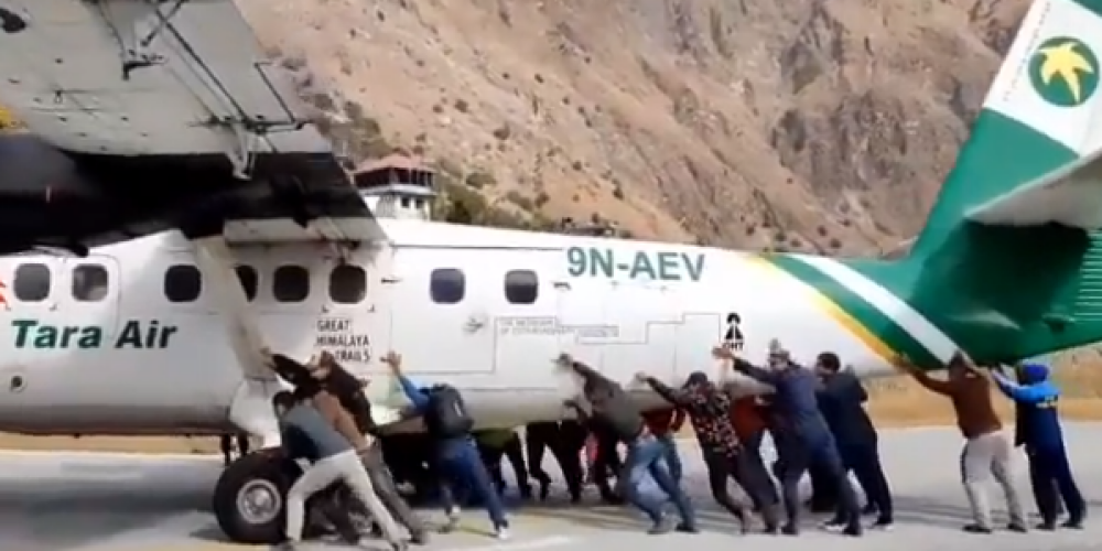 Ārzemēs08.12.2021"Kaut kas tāds iespējams tikai Nepālā!" Pasažieri saviem spēkiem stumj lidmašīnu nost no skrejceļa