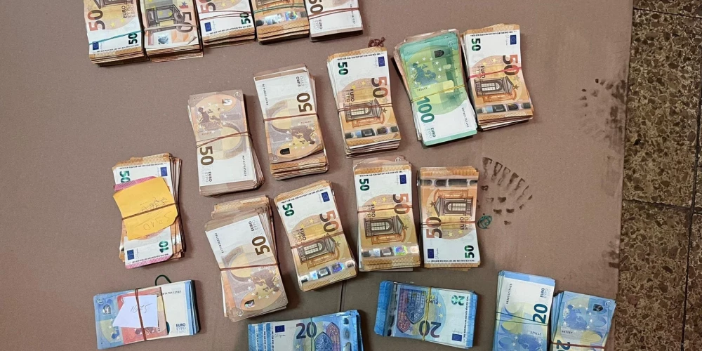 FOTO: Rīgā aizturēts narkodīleris un 2002. gadā dzimusi sieviete ar 161 816 eiro skaidras naudas