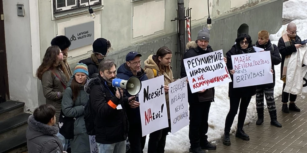 VIDEO; FOTO: pensionāri un progresīvi jaunieši pie NA biroja protestē pret "atkrieviskošanu"