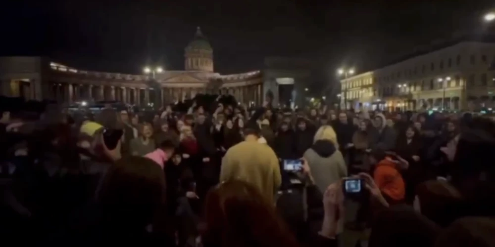 "Kad nomirs cars - mēs līksmosim!" Simtiem jauniešu Sanktpēterburgā nepakļaujas Kremlim un dzied "aizliegtās dziesmas". VIDEO
